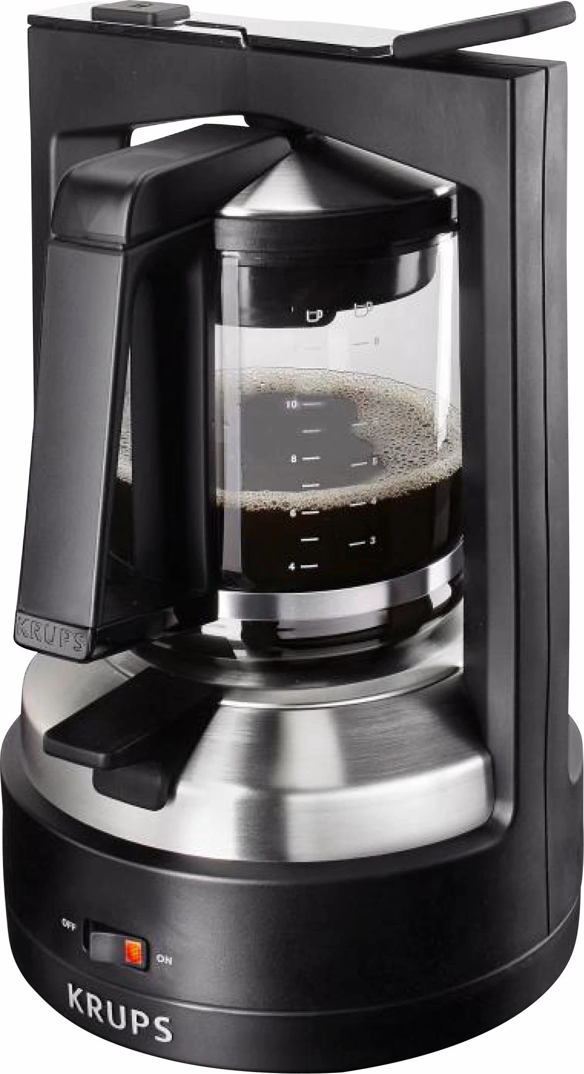 KRUPS T8.2 met exclusief druksysteem in opvallend design! Meer dan 50 jaar onveranderde techniek – meer dan 50 jaar succes spreken voor zich! <br><br><b>Speciale eigenschappen: </b><br><ul> <li>Koffiezetapparaat in opvallend design met druksysteem voor een mokka-achtige smaak</li></ul><b>Overige specificaties: </b><br><ul> <li>Inhoud van de kan: 1 l (voor 8 tot 12 kopjes)</li><li>Verlichte aan-uitschakelaar</li><li>Snoeropwikkeling</li><li>Automatische uitschakeling</li></ul><b>Kenmerken & functies: </b><br><ul> <li>Filtermaat: permanente filter</li><li>Soort kan: glazen kan</li><li>Inhoud (liter): 1</li><li>Aantal kopjes: 8 – 12 kopjes</li><li>Druppelstop: nee</li><li>Uitneembare filterhouder: ja</li><li>Automatische uitschakeling: ja</li><li>Afneembaar waterreservoir: nee</li><li>Waterniveau-aanduiding: nee</li><li>Afneembare delen geschikt voor de vaatwasser: nee</li><li>Aan-uitschakelaar met controlelampje: ja</li><li>Warmhoudfunctie: nee</li></ul><b>Extra functies: </b><br><ul> <li>Plaatsingssysteem voor het gemakkelijk plaatsen van de kan</li></ul><b>Technische gegevens: </b><br><ul> <li>Vermogen (W): 850</li><li>Aansluiting (W/V/frequentie): 220 – 240 V</li><li>Afm. apparaat hxbxd (cm): 35,2×24,9×22,8</li><li>Gewicht (kg): 2,67</li><li>Kleur: wit/edelstaal</li><li>Gebruiksaanwijzing in: Frans, Engels, Duits, Nederlands, Fins, Noors, Zweeds, Deens, Italiaans</li></ul>
