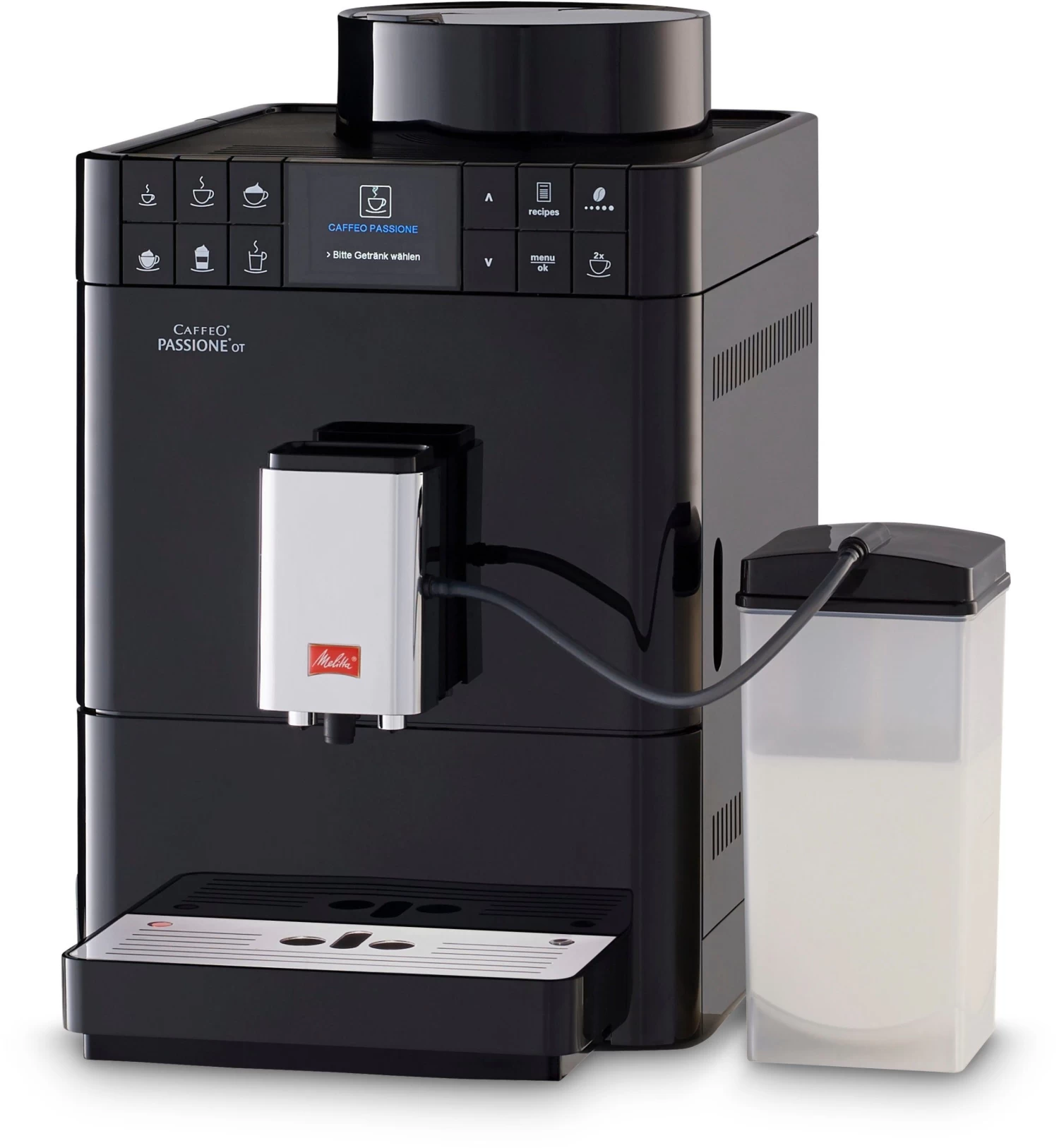 Wil je graag genieten van koffiespecialiteiten, heet water en melkschuim met één druk op de knop? Dan is de Caffeo® Passione® OT de juiste keuze! Het volautomatisch koffiezetapparaat is bijzonder overtuigend door zijn 10 koffievariaties, het Best Aroma System en de eenvoudige bediening en reiniging. <br><br><b>Speciale eigenschappen: </b><br><ul> <li>De one-touch-functie zorgt dat je jouw lievelingsdrankje kan maken met slechts één druk op de knop. Door de voorgeprogrammeerde koffievariaties, heet water, melkschuim of warme melk tover je de lekkerste drankjes eenvoudig tevoorschijn. Het volautomatische koffiezetapparaat is bovendien door de duidelijke sneltoetsen en het hoogwaardige display met stap-voor-stap-handleiding eenvoudig te bedienen.</li></ul><b>Overige specificaties: </b><br><ul> <li>Sterkte van de koffie vijfvoudig, origineel bereidingsproces, naar keuze topping van melkschuim of warme melk mogelijk, separate heetwaterbereiding mogelijk, all-in-one-uitloop voor koffie, melk & heet water, maalgrofheid vijfvoudig instelbaar</li><li>Best Aroma System, afneembaar waterreservoir, Aromasafe-bonenreservoir, compatibel met de inzet van Claris-filterpatronen, compacte constructie, modern design, materiaal in hoogglansuitvoering met verchroomde elementen, edelstalen lekbakje</li><li>Automatisch reinigings-, ontkalkings- en spoelprogramma, afneembare melk-unit, afneembare koffiezet-unit, afneembare lekbak/pulpcontainer</li><li>In hoogte verstelbare koffietuit tot 135 mm, aan-uitschakelaar met 0-W-functie, variabele automatische uitschakeling na 9 tot 480 minuten zonder gebruik</li></ul><b>Kenmerken & functies: </b><br><ul> <li>Gelijktijdige bereiding van 2 kopjes: ja</li><li>Kopjesplateau: kopjesplateau voor voorverwarming van kopjes (passief)</li><li>Reservoir voor tweede, voorgemalen koffiesoort: nee</li><li>Timer & tijdsaanduiding: nee</li><li>In hoogte verstelbaar lekbakje: nee</li><li>In hoogte verstelbare koffietuit: ja</li><li>Uitneembare koffiezet-unit: ja</li><li>Automatische spoel- en reinigingsprogramma's: ja</li><li>Ontkalking: automatisch ontkalkingsprogramma</li><li>Maalwerk: taps, stalen maalwerk</li><li>Maalgrofheid instelbaar: ja</li><li>Instelbare hoeveelheid per kopje: variabele koffiehoeveelheid elk doorlooptijd 25-220 ml</li><li>Heetwater-/stoomtuit: ja</li><li>Direct-stoomfunctie (2 doorloopverwarmers): nee</li><li>Melkopschuimer: One Touch Venturi System</li><li>Melkreservoir: ja</li><li>Programmafuncties: ja</li><li>Display: TFT-kleurendisplay (tekst en grafiek)</li><li>Kopjesverlichting: ja</li><li>Energiebesparende stand: ja</li><li>Automatische uitschakeling: ja</li></ul><b>Extra functies: </b><br><ul> <li>Werktemperatuur 3-traps programmeerbaar, automatische waterniveauregeling (waarschuwt als het water bijgevuld moet worden), automatische maalvolumeregeling voor constante koffiebeleving, One Touch Venturi System voor automatische bereiding en de beste melkschuimkwaliteit</li></ul><b>Accessoires: </b><br><ul> <li>Welcome pack bestaand uit: schoonmaaktablet, melksysteem-schoonmaakmiddel, vloeibare ontkalker, waterfilter</li></ul><b>Technische gegevens: </b><br><ul> <li>Inhoud bonenreservoir (g): 125 g</li><li>Capaciteit waterreservoir (liter): 1,2 l</li><li>Capaciteit van de koffiedikhouder: 8</li><li>Pompdruk (bar): 15 bar</li><li>Aansluiting (W/V/frequentie): max. 1450 W, 220-240 V, 50/60 Hz</li><li>Afm. apparaat hxbxd (cm): 40,5 cm x 25,3 cm x 38,0 cm</li><li>Gewicht (kg): 8,6 kg</li><li>Kleur: zwart</li><li>Gebruiksaanwijzing in: DE/EN/FR/NL/IT</li></ul>
