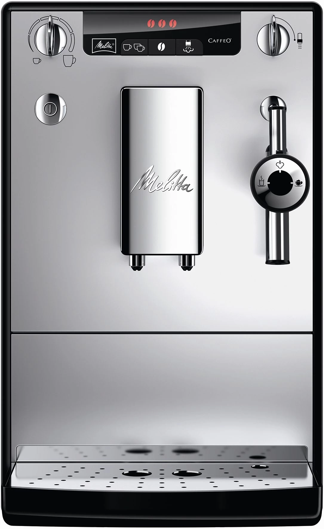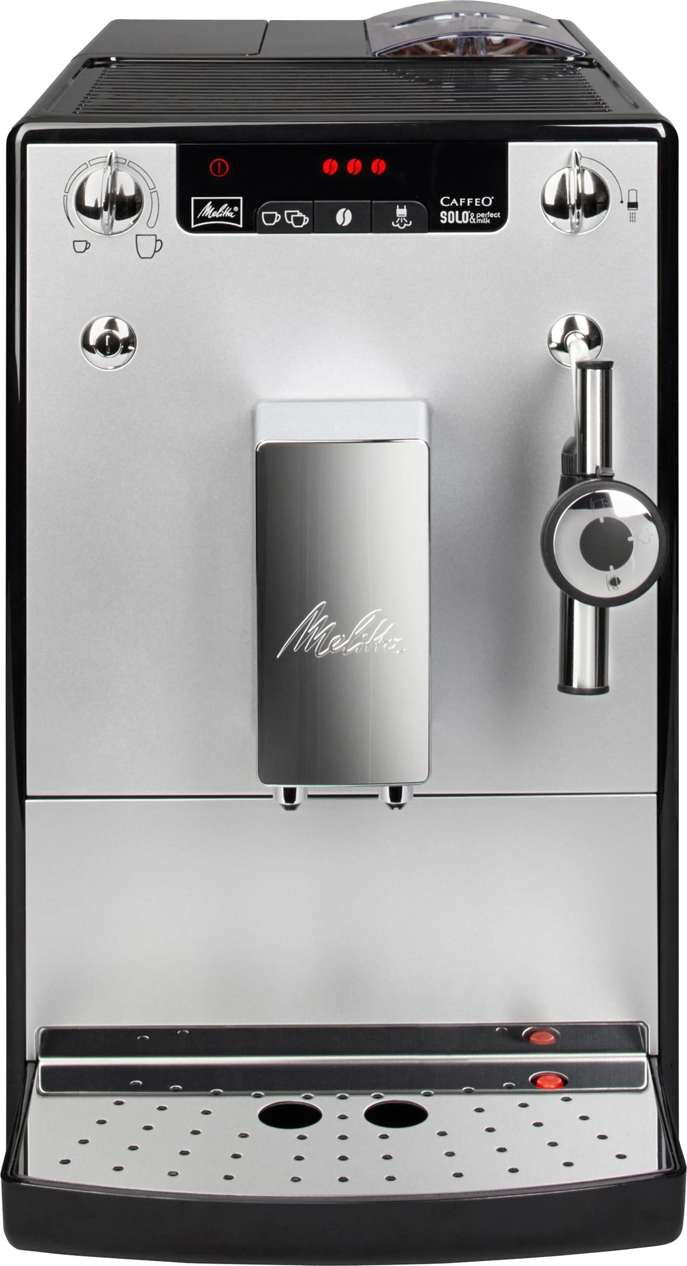 Volautomatisch koffiezetapparaat CAFFEO® Solo® & Perfect Milk E 957-103 van MELITTA. De meervoudig onderscheiden Caffeo® Solo® is nu nieuw uitgevoerd met de cappuccinatore, wat de bereiding van koffiespecialiteiten met melkschuim heel eenvoudig maakt. <br><br><b>Speciale eigenschappen koffiezetter: </b><br><ul> <li>Cappucinatore. Cappuccinatore voor heel eenvoudige bereiding van melkschuim met een prima consistentie, warme melk en heet water. Handmatig mengen via een draaiknop – iedereen kan precies de hoeveelheid bepalen die hij wenst en die in zijn kopje past.</li></ul><b>Overige specificaties: </b><br><ul> <li>Aroma-Extraction-systeem voor maximaal genot. Maak gebruik van de voortrekfunctie van SOLO® & perfect milk: de gemalen koffie wordt voor het eigenlijke koffiezetten met water besprenkelt, om een maximum aan geurstoffen van de koffie los te maken.</li><li>Puristisch en compact design. 20 cm breed, 32,5 cm hoog, 45,5 cm diep – de SOLO® & perfect milk behoort tot de kleinste volautomatische koffiezetapparaten ter wereld, maar is toch voorzien van hoogwaardige Melitta-techniek.</li><li>2 kopjes-uitvoering. Met 1 druk op de knop bereidt SOLO® & perfect milk 1 kopje koffie, bij 2 keer drukken zelfs 2 kopjes.</li><li>0 W-schakelaar. Door op de 0 W-schakelaar te drukken onderbreekt de SOLO® & perfect milk de verbinding met het elektriciteitsnet. De off-functie is bovendien programmeerbaar, zodat na de gewenste tijd het apparaat automatisch de verbinding verbreekt met het elektriciteitsnet.</li></ul><b>Kenmerken & functies: </b><br><ul> <li>Gelijktijdige bereiding van 2 kopjes: ja</li><li>Kopjesplateau: verwarmd</li><li>Reservoir voor tweede, voorgemalen koffiesoort: nee</li><li>Timer & tijdsaanduiding: nee</li><li>In hoogte verstelbaar lekbakje: nee</li><li>In hoogte verstelbare koffietuit: ja</li><li>Uitneembare koffiezet-unit: ja</li><li>Automatische spoel- en reinigingsprogramma's: ja</li><li>Ontkalking: ja</li><li>Maalwerk: kegelmaalwerk van staal</li><li>Maalgrofheid instelbaar: ja</li><li>Instelbare hoeveelheid per kopje: ja</li><li>Heetwater-/stoomtuit: ja</li><li>Direct-stoomfunctie (2 doorloopverwarmers): nee</li><li>Melkopschuimer: cappuccinatore</li><li>Melkreservoir: nee</li><li>Programmafuncties: ja</li><li>Display: display met duidelijke tekst</li><li>Kopjesverlichting: nee</li><li>Energiebesparende stand: ja</li><li>Automatische uitschakeling: ja</li></ul><b>Extra functies: </b><br><ul> <li>Werktemperatuur drievoudig programmeerbaar (87 °C / 90 °C / 93 °C), edelstalen uitdruprek, afneembaar waterreservoir, praktische rollers voor eenvoudig verplaatsen van het toestel</li></ul><b>Technische gegevens: </b><br><ul> <li>Inhoud bonenreservoir (g): 120</li><li>Capaciteit waterreservoir (liter): 1,2</li><li>Capaciteit van de koffiedikhouder: 8</li><li>Pompdruk (bar): 15</li><li>Aansluiting (W/V/frequentie): 1400 W / 230 V</li><li>Afm. apparaat hxbxd (cm): 32,5 x 20 x 45,5</li><li>Gewicht (kg): 8</li><li>Kleur: zilver</li></ul>