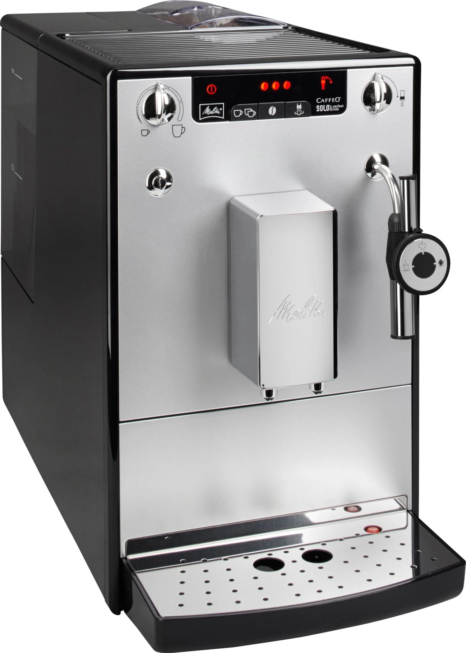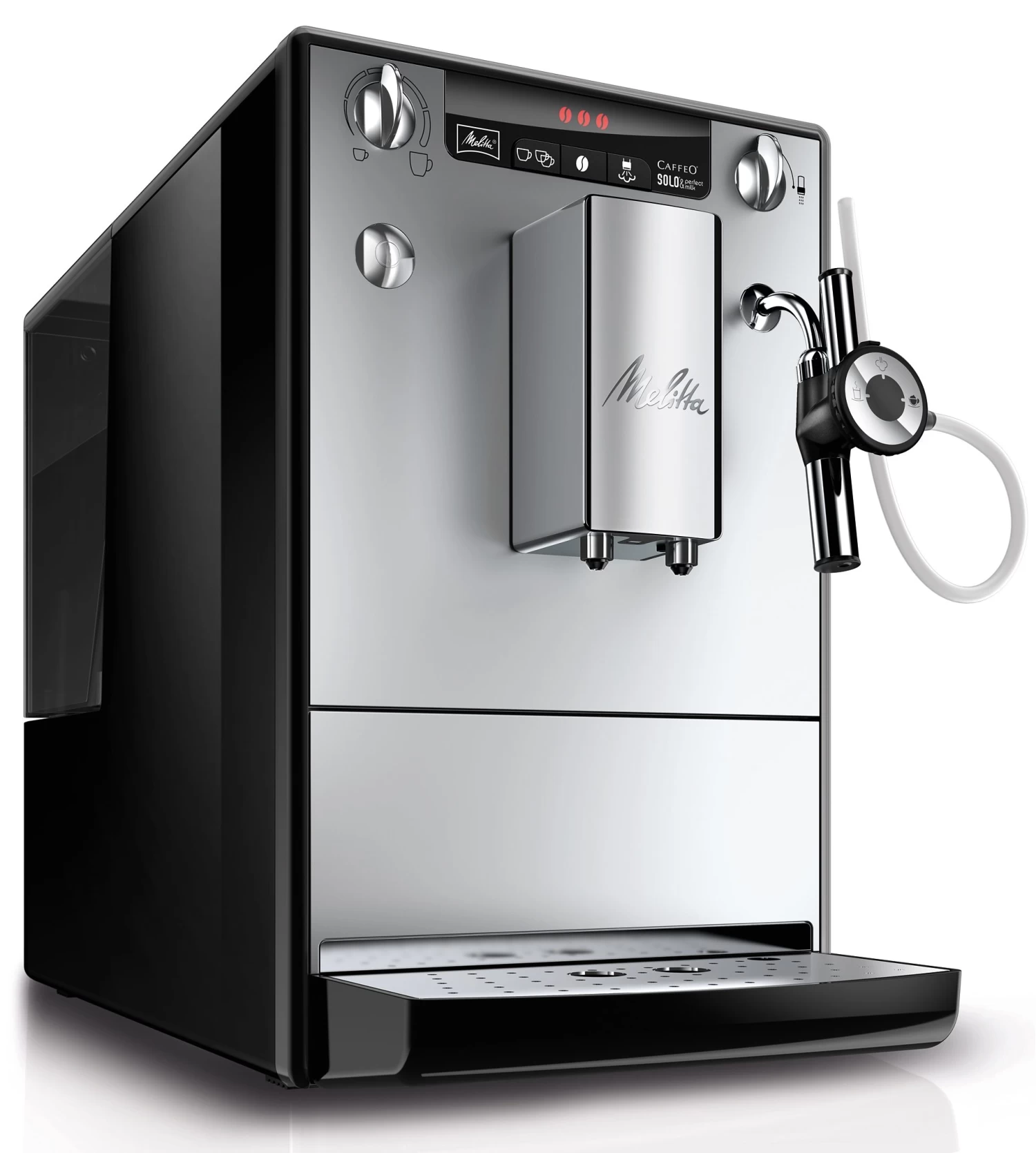 | Overige voordelen | • de Solo® & perfect milk behoort tot de kleinste volautomatische koffiezetapparaten van de wereld., • cappuccinatore voor kinderlijk eenvoudige bereiding van melkschuim in prima consistentie, warme melk en heet water., • handmatige hoeveelheidsregeling via een draaiknop: iedereen kan precies de hoeveelheid tappen die hij of zij wil en die in het kopje past. |
