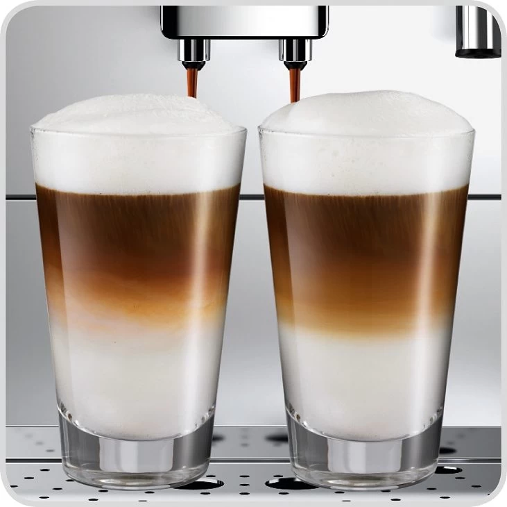| Top-features | Aroma-Extraction-System (A.E.S.): voor maximaal genot wordt het voortreksysteem Aroma-Extraction-System (A.E.S.) gebruikt: de versgemalen koffie wordt voor het eigenlijke koffiezetten met water bevochtigd, om de geurstoffen van de koffie los te maken. |